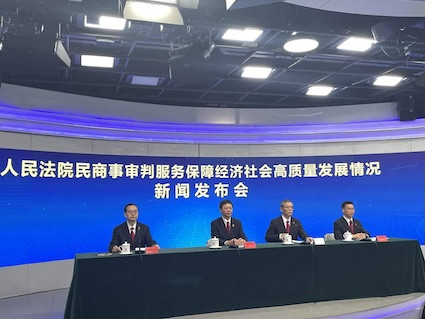 中国最高人民法院近日召开新闻发布会,介绍人民法院民商事审判服务保障经济社会高质量发展情况。