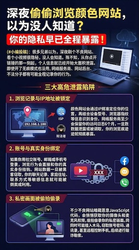 第一,IP地址和浏览记录被死死锁定。颜色网站能通过IP精准定位你所在的城市、国家,再结合手机型号、浏览器指纹等信息,轻松把你认出来。网络运营商至少会把你的访问日志留存6个月,一旦数据泄露或者被调取,你的整个浏览历史就彻底曝光。